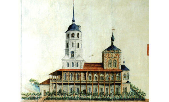 Initially, the church was built right into the wall of a wooden fortress and on the first floor there was a warehouse for the state treasury, so people entered the temple which was located on the second tier through a wooden promenade-gallery. There is still reminiscent of that with the triangular ornaments between the first and second floors, where the balks were inserted, and on the second tier there are doors which leading to nowhere. On the south side of the temple on the second floor, you can still see in the window bars the date when the church got a bell tower (1760) so that was a time when the temple acquired a modern face.
