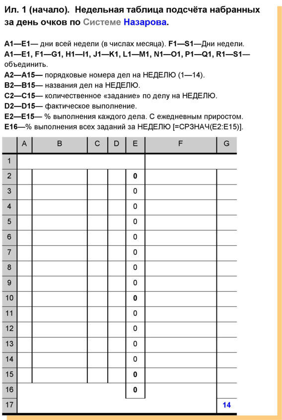 6. Е2 Е15 6. Е2 Е15 выполнения дела за неделю. Подсчитывается ежедневно. В итоге недельный результат. Например: «80». Или: «100».