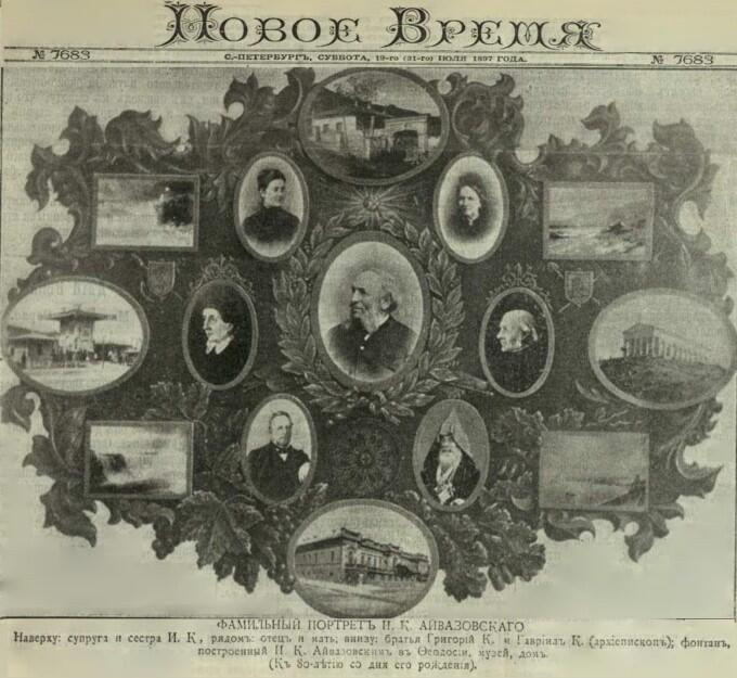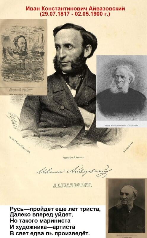 «Маринист-виртуоз, могущий изображать кистью на полотне не только форму морских вод, но также их шум и плеск, их запах и температуру и даже их горько-соленый вкус. Ходит слух, что г. Айвазовский ещё в молодости продал свою душу Нептуну за обладание его дочерью, коварной, изменчивой и шаловливой красавицейморской волною, с которой он и вступил в законный- художественный брак. С проницательностью влюбленного, он изучил все её тайны, привычки и капризы, и она, со своей стороны, до сих пор ему не изменила. Слава нашего мариниста велика и качественно, и количественно: с одной стороны, он пишет воду так живо и вкусно, что при её виде на его картинах зрителю непременно захочется пить, а в жаркую погоду и выкупаться; с другой плодовитость и быстропись его феноменальны! На своём веку г. Айвазовский, по вычислению одного опытного интенданта, исписал своими «видами» столько полотна, что последнего хватило бы на снаряжение белья для всего гвардейского корпуса, а, по соображениям одного учёного геолога, если бы всю воду, воспроизведенную кистью г. Айвазовского, выплеснуть из его картин, то на земле неизбежно повторился бы всемирный потоп. Быстроту письма маринист наш, как известно, довёл до того, что ему не трудно было бы набрасывать свои этюды, пролетая мимо полотна на курьерском поезде». «Наши знакомые» Вл. Михневич.