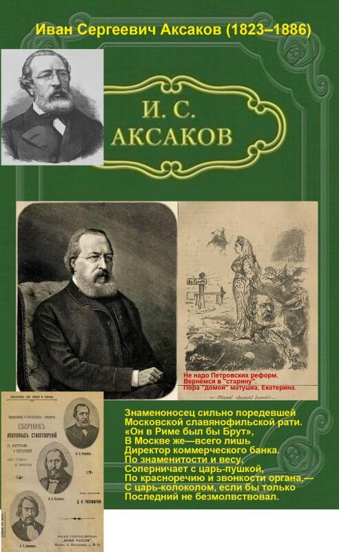 Иван Сергеевич родился в селе Надежине, Оренбургской губернии, 26-го сентября 1823 года. Окончив курс в училище Правоведения, он определился на службу в московский сенат в 1842 году. В 1848 году Аксаков переходит в министерство Внутренних Дел, чиновником особых поручений. Эту должность он исполнял с повышенным интересом, Возможно и как служака, но и как источник информации для своего писательского творчества. По службе он поднаторел на выявлении раскольнических сект. От чего такая непримиримость к раскольникам? Если бы они были другой веры, не беда. Но они любую власть на земле считали и считают властью Антихриста. В православии есть понятие Антихриста, но оно не так всеобъемлюще как у раскольников. По их верованию и государственная власть от Антихриста. От сюда и уклонение от исполнения решений, указов государственной власти, и «беглецы», и «живые мертвецы». Иван Сергеевич воспользовался этой информацией и написал объёмный труд «О беглецах». Скажем прямо нарушение служебной этики. Через восемь лет гражданской службы после окончания училища, он вышел в отставку и поселился с отцом, известным писателем (Сергей Тимофеевич, с ним мы познакомились выше по тексту), в Москве, где и занялся литературой. Вернее сказать, начальство узнало о его литературной деятельности, и высказало своё категорическое неудовольствие совмещением его писательства с исполнением служебных обязанностей. Особенно министра Внутренних дел графа Перовского интересовал ответ подчинённого на вопрос «почему был выбран главным героем его писательства беспаспортный беглец?». Он был поставлен перед выбором литераторство или служба. Выбор он сделал в пользу литературного творчества. Именно в Москве Иван Сергеевич примыкает к славянофильскому литературному кружку, где его отец (отенька, ласкательное от слова отец так И.С. обращается в письмах к своему папе) и старший брат занимают весомое положение.