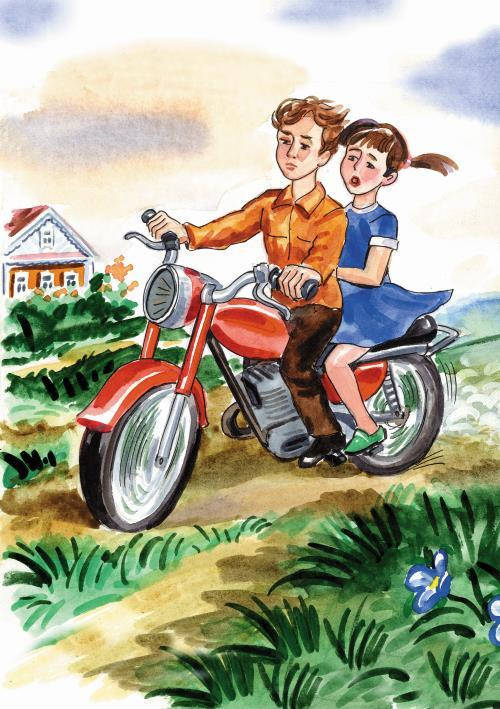 Калганы бик тиз хәл ителде. Абзар почмагыннан иске «кәҗә тәкәсе»н сөйрәп чыгардылар. Лилия генә башта аптырап торды, аннан соң, миңа барыбер дигән кыяфәт белән, Әхмәтнең артына менеп утырды. Сигез-ун малай хәтсез генә этеп баргач, иске мотоцикл чаф-поф килеп бер төчкереп алды да, кинәт кенә пытырдап, ук шикелле алга ыргылды.