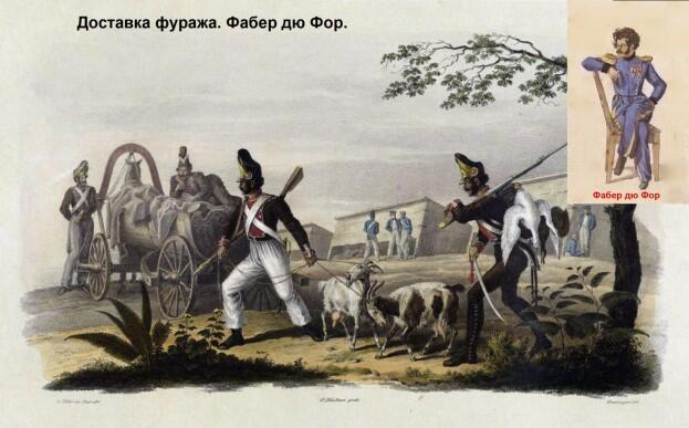 По ходу повествования книги я буду часто в качестве иллюстраций использовать рисунки немецкого художника Фабера дю Фора. В звании лейтенанта он прошёл с Великой армией Наполеона всю Русскую кампанию в составе корпуса маршала М. Нея. Он носил с собой книгу для записей, в которую заносил свои наброски и заметки, выполненные карандашом, чернилами или акварелью. Художник использовал каждый свободный от службы момент, чтобы зафиксировать карандашом, или тем, что было под рукой, свои впечатления.