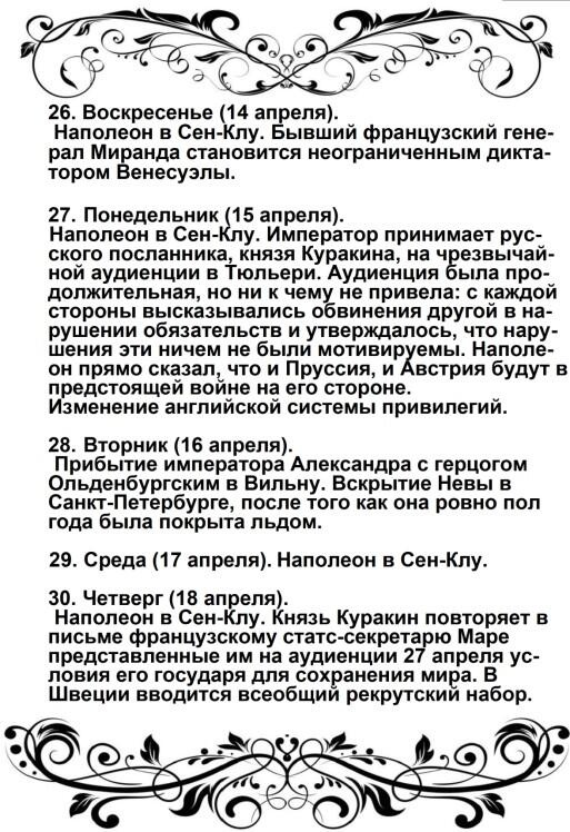 «Солдаты! Вторая польская война началась. Первая окончилась в Фридланде и в Тильзите. В Тильзите Россия поклялась быть в вечном союзе с Францией и в войне с Англией; ныне она нарушает свои клятвы!