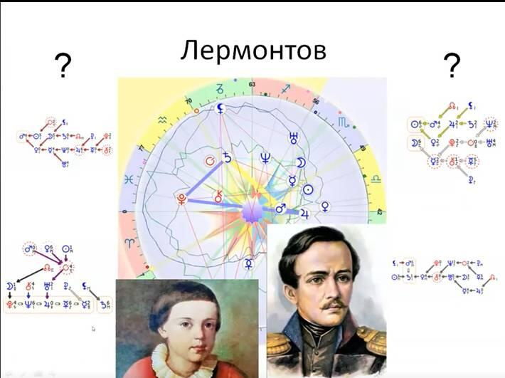 Исследователь судьбы Лермонтова, астропсихолог Сергей Дресвянников очень интересно описал судьбограмму Лермонтова: по его утверждениям, Лермонтов уже в детстве был склонен к философии (и это на самом деле так), с рано открывшимся поэтическим талантом (что тоже является чистой правдой). А по своим кармическим задачам и профессии своей он получается смотрителем и держателем порядка, третейским судьёй, военным, способным стать полковником по служебной лестнице в армии, лидером, способным построить людей. По словам Сергея Дресвянникова, Лермонтов просто классный обличитель ( это в его творчестве очень хорошо просматривается, за что его и наказывали), но с сильным перегибом по планете Марс, означающей военных и конфликт с ними, что и произошло: он погиб от руки бывшего военного, своего приятеля Мартынова.