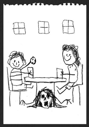 К полднику он даже не притронулся. Я накрываю печенье полиэтиленовой пленкой, а стаканы с молоком убираю в холодильник. Затем иду к раковине и мою посуду. Когда я заканчиваю, Тедди все еще заседает в туалете. Я сажусь за стол и понимаю, что не успела полюбоваться его последним творением, поэтому беру лист бумаги и переворачиваю его лицом вверх.