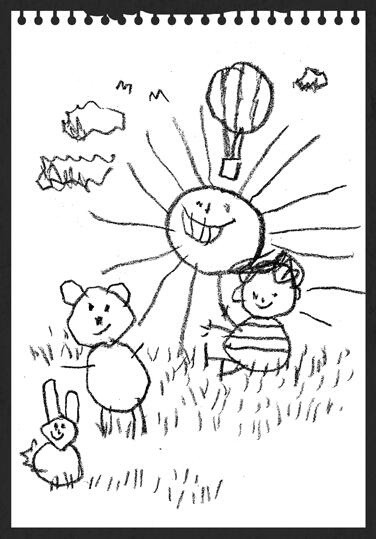 На картинках нет ничего необычного разные зверюшки, улыбающиеся человечки, солнышки, какие рисуют все дети. Тедди внимательно наблюдает за моей реакцией на каждую и впитывает мои похвалы как губка.
