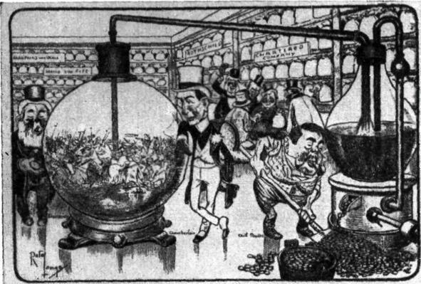 «Война и капитал, или превращение человеческой крови в деньги». Карикатура из немецкого журнала «Дер варе Якоб», 1900 г.