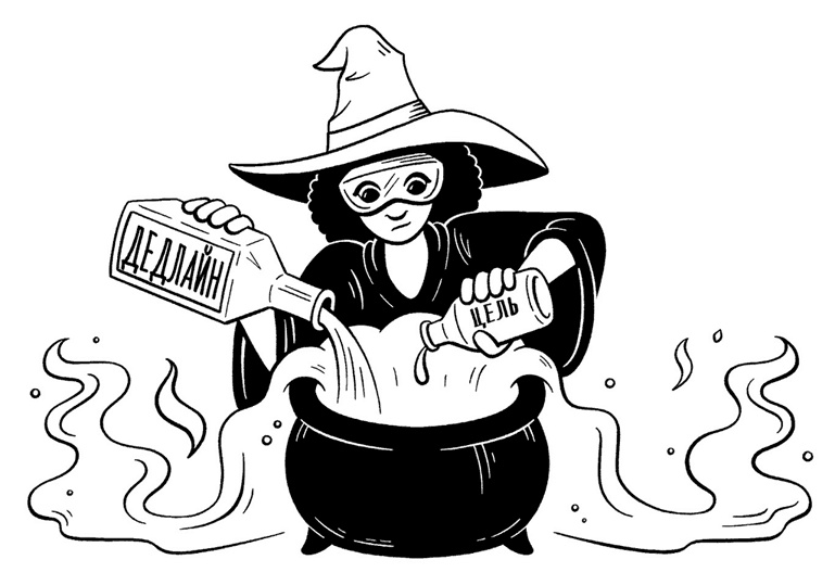 Что за ингредиенты? Дедлайн (срок завершения проекта) и цель. Если их соединить, получится мощнейшее зелье, которое напитает силой твои истории и поможет пройти весь путь до конца.