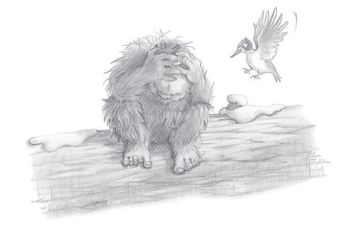 Йети поднял голову и увидел маленького красно-чёрного дятла, который тут же слетел и сел на бревно рядом с ним.