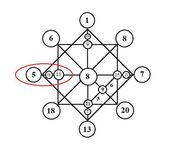 Первая энергия в ключе (на рисунке это 5) расскажет нам о том, для чего ваша душа пришла к родителям. Вторая энергия (на рисунке это 18) задача отношений. Третья энергия (на рисунке это 13) ошибки во взаимоотношениях с родителями и своими детьми.