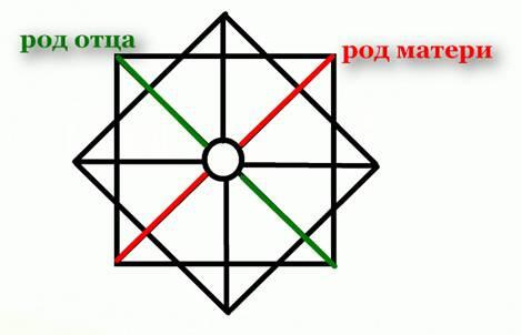 В матрице есть четыре основных линии Неба и Земли, мужская и женская. Земля отвечает за все материальное, Небо все духовное, мужская и женская это линии по родам человека.