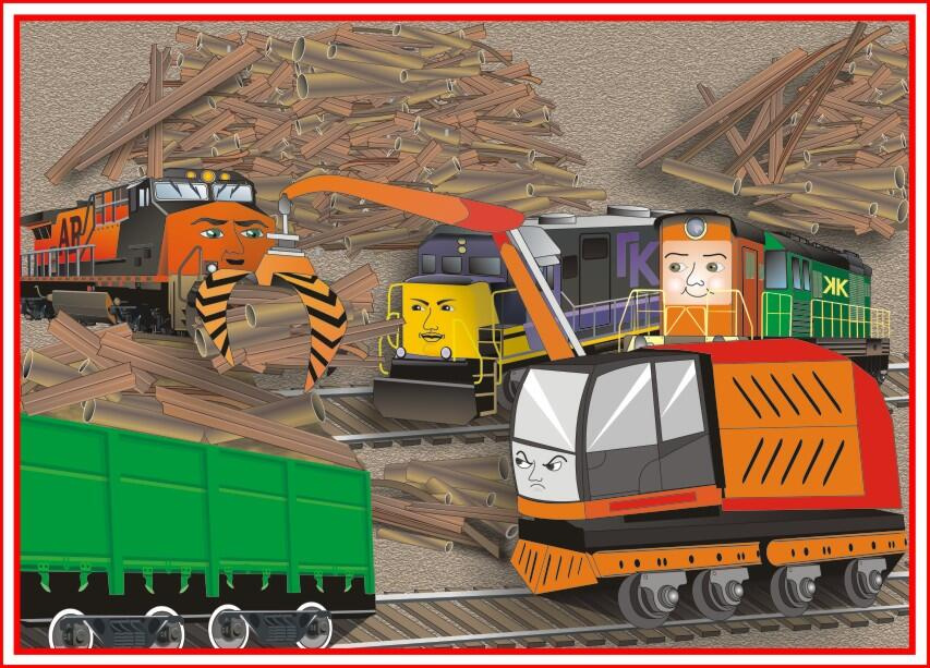 Да, эти глупые паровозики. Один, который зелёный, сегодня особенно отличился. Повалил всю кучу металлолома на себя. Содрал краску с боков. Пришлось ждать, когда соберут эти железки и опять погрузят в вагоны.