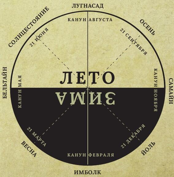 С течением времени эти незначительные ритуалы преобразованы в традиционные торжества символического характера и стали частью Колеса Года (современный языческий термин, обозначающий календарь праздников). Основное внимание в Колесе уделяется равноденствиям и центральным моментам между временами года. Каждому эти торжества дарят поддержку на пути к следующему сезону. Многие отнеслись к ним с непониманием. Есть люди, которые смеются над языческими традициями, но ты поймешь их значение, когда узнаешь откуда они к нам пришли. Представь наших предков в окружении беспробудной холодной зимы, сидящих у костра и мечтающих о солнечном тепле. Для них любая перспектива была поводом порадоваться, а надежда способом выжить. Похоже, праздники для них значили больше, чем время похвастаться перед друзьями или побаловаться чем-то вкусным. Наоборот, на традиционных пиршествах люди лакомились дарами природы, пока они не успели испортиться.