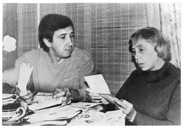 А. Н. Стрельникова и М. Н. Щетинин читают письма пациентов. Сентябрь 1989 г. (Фото из личного архива М. Н. Щетинина).