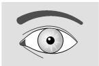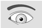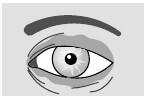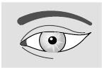 Радужка слегка прикрыта верхним веком и касается нижним краем нижнего века. Белочная оболочка видна по бокам от радужки.