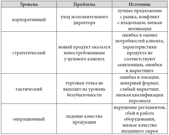Проблемы проявляются в формате «пожара»: обвал курса национальной валюты; введение санкций; резкое удорожание закупок; приход внешних проверок; изменение налогового законодательства; уход ключевого сотрудника. Для российского бизнеса внезапно возникающие различного рода неприятности являются естественным фоном существования бизнеса. Проблемы могут сформироваться в зоне, где их вообще не ожидаешь, и всё предугадать в любом случае невозможно (пандемия).