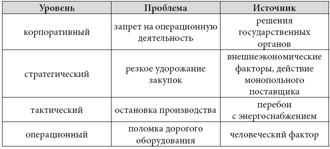 Проблемы проявляются в формате «пожара»: обвал курса национальной валюты; введение санкций; резкое удорожание закупок; приход внешних проверок; изменение налогового законодательства; уход ключевого сотрудника. Для российского бизнеса внезапно возникающие различного рода неприятности являются естественным фоном существования бизнеса. Проблемы могут сформироваться в зоне, где их вообще не ожидаешь, и всё предугадать в любом случае невозможно (пандемия).