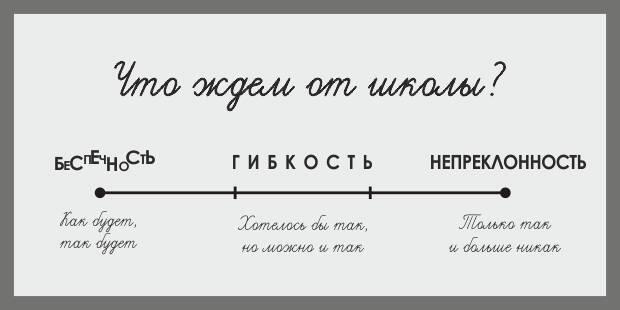 Так, может, нет смысла вообще на что-то настраиваться? Некоторые так и поступают, полагаются на судьбу, ведь школа никого не минует, поэтому решать проблемы надо по мере возникновения. Но вам не кажется странной идея никак не обдумывать и не планировать как минимум девять лет жизни семьи? Мы же тратим время на выбор бытовой техники, мастеров для ремонта или места для отдыха, а ведь значение этих вещей для жизни семьи несопоставимо с ролью образования.