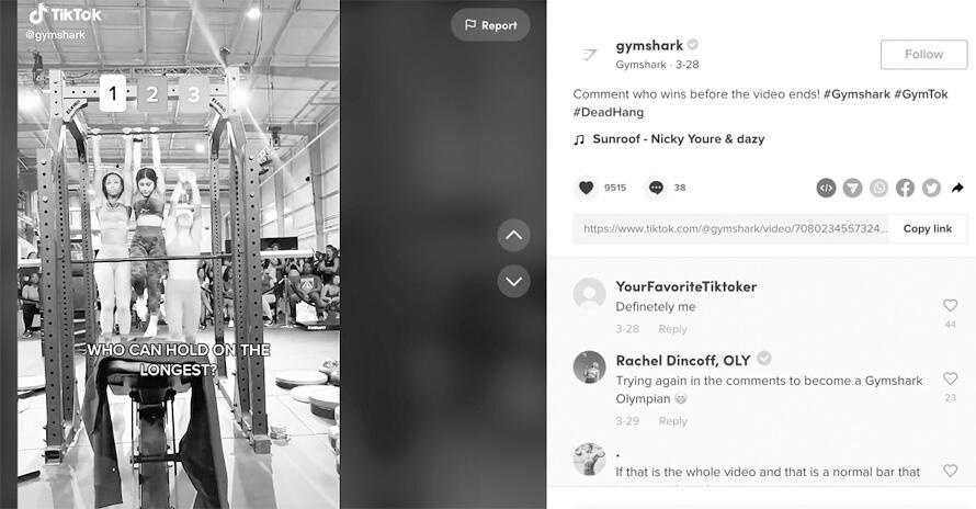 Челленджи и показ талантов основной формат сети спортивных залов Gymshark с 3,5-миллионным TikTok.
