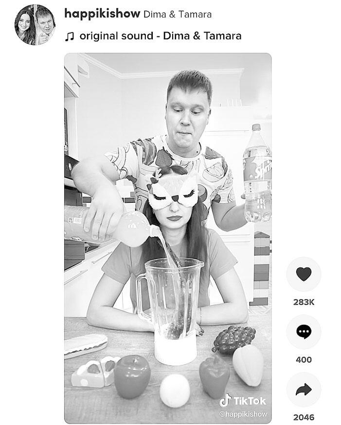 На скриншоте ниже: тренд, где человек с завязанными глазами выбирает ингредиенты для коктейля. Тамара[10] выбрала сельдь, фанту и арбуз.