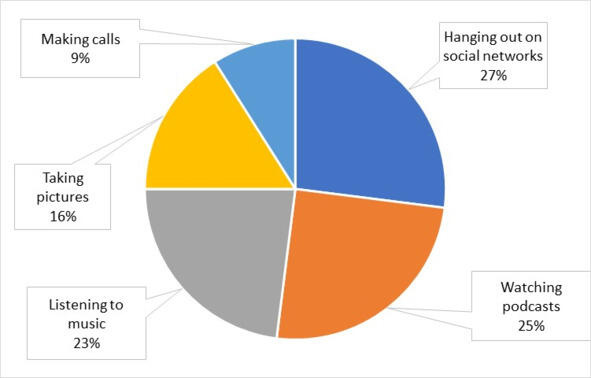 ***38.2 Imagine that you are doing a project on what teens use smartphones for in Zetland. You have found some data on the subject the results оf the opinion polls (see the pie chart below).