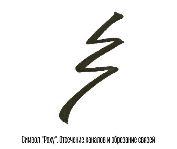Энергия работает сама, остановку вы ощутите. Обычно это 510 минут. Завершив сеанс, вы благодарите энергию, отпускаете ее. Изображаете важнейший символ духовных практик Раху. Отсечение каналов (нужно обрезать эфирные нити с клиентом). Его используют только при взаимодействии с кем-то или чем-то, для себя не нужно, только если работали с исцелением Рода или кармы прошлых воплощений. Его рисуют ребром ладони в воздухе, представляя, как все нити между вами и клиентом распадаются Раху режет их, как нож, гармонично и без вреда.