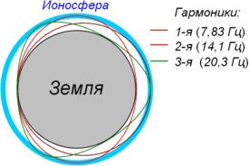 Особо стоит упомянуть резонанс Шумана[19], то есть частоты электромагнитных волн в пространстве «Земля ионосфера». Это естественные электромагнитные частоты нашей планеты. Своего рода «сердцебиение» Земли.