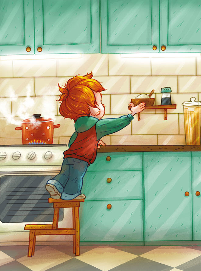 О, да у тебя всё наготове: кастрюля с водой, пачка макарон. А где же соль?