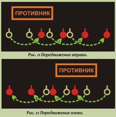 Первым начинает движение второй по счету член группы, с того фланга, в сторону которого осуществляется передвижение.