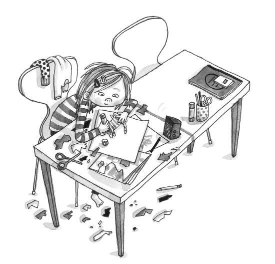 Я вырезала льва и так старалась, что нечаянно опрокинула банку с карандашами, и они рассыпались по всем бумагам. Признаю: это было немного неаккуратно с моей стороны. Но у меня просто не получается соблюдать порядок! Бланка этого не понимает, она ведь чистюля. На её половине все заготовки картинок сложены аккуратной стопочкой.