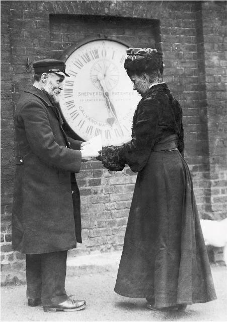 Рут Бельвиль у входа в Королевскую обсерваторию в Гринвиче, где она узнавала точное время, чтобы потом обойти с ним лондонских клиентов[62]