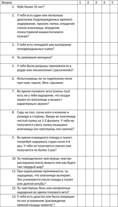 Поздравляю! Ты здоровая и, скорее всего, молодая и не рожавшая женщина. Ты можешь отложить в сторону эту книгу или приобрести ее для мамы/подруги. А можешь использовать эту книгу как тренажер для профилактики тазовых нарушений. Так же она поможет тебе подготовить промежность к предполагаемой беременности и избежать разрывов.