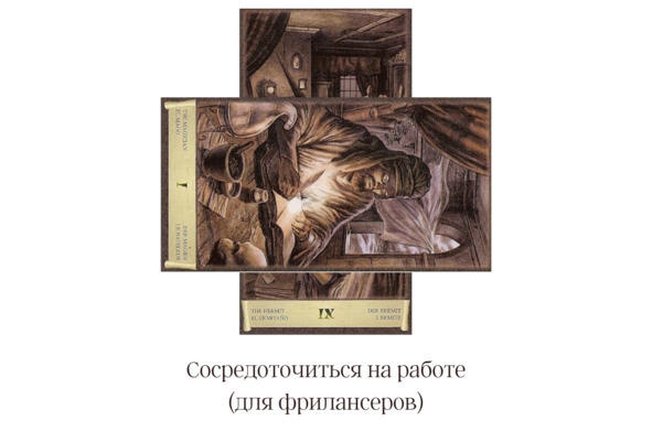 Пример такой формулы:по Отшельнику я работаю медленно, в свое удовольствие, не спеша и не соблюдая дедлайны. Мне не хватает энергии на какой-то проект, и я хочу закончить его быстро, а не тратить уйму времени. Более активная и схожая по смыслу карта здесь Маг.