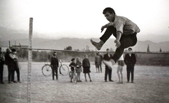 Середина 1960-х. Школьные соревнования по лёгкой атлетике на открытом воздухе.