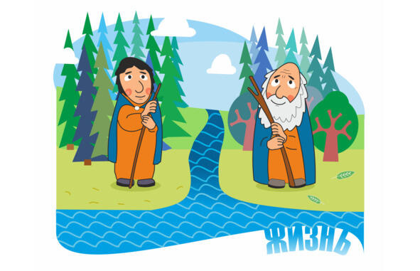 Давным-давно, по обе стороны бурной реки росли обширные леса. С одной стороны лес принадлежал горбатому Старцу, а с другой высокому Молодцу.