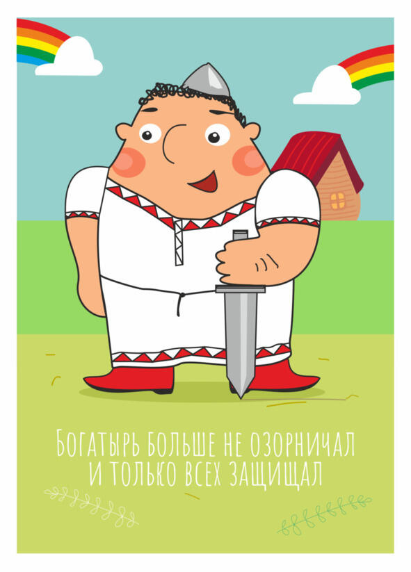 Понял богатырь, что все его проделки возвращаются ему сторицей. И раз уж началось это после встречи с торговцем, у него и следует просить избавления. Искал он торговца, искал. Всю деревню исходил богатырь вдоль и поперёк, но не встретил его. Так и живёт он теперь больше не озорничает, каждого уважает и никого не обижает. Но и в обиду никого не даёт.