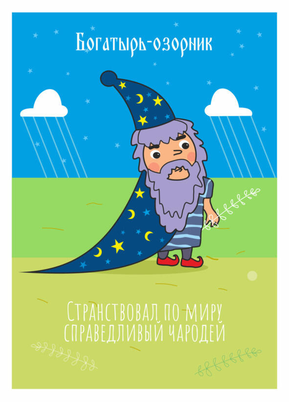 Странствовал по миру справедливый чародей, и было это давным-давно. Привела его дорога в деревню, где жил богатырь-озорник. Силы тот богатырь был немыслимой, только пользовался он ею не для добрых дел, а только лишь для потехи. То затеет он драку со всеми мужиками деревни, то выпьет всю воду из колодца, то истопчет пшеничное поле. На все замечания и увещевания богатырь отвечал смехом, а иной раз и кулаком. Никакой управы на него не было. И решил чародей всё исправить уравнять его с другими людьми.