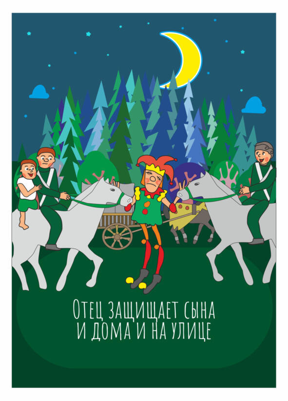 Ты отец мальчика? Думаю, ты хочешь лучшего для своего сына. Отдай его в нашу семью скоморохов, и он будет всегда веселиться, сказал скоморох отцу.