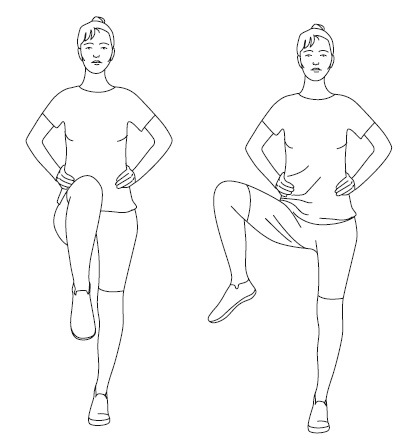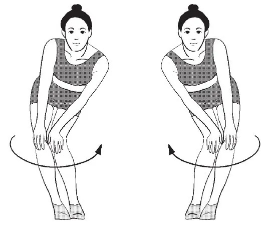 Вращение коленей: по 12 раз по часовой и против часовой стрелки