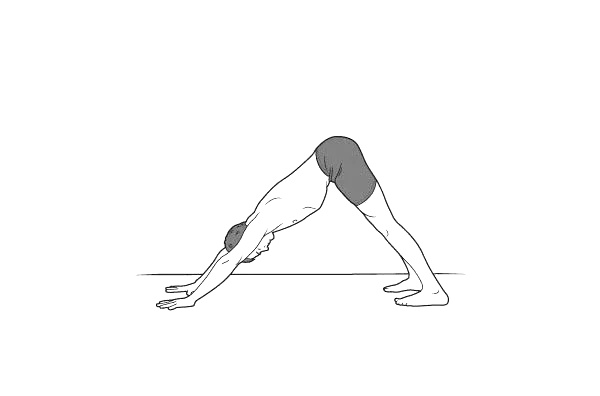 Из положения на четвереньках перейди в положение собака мордой вниз. Стопы и ладони на ширине плеч, большие пальцы на руках направлены друг на друга, остальные -растопырены. Шея свободна и не зажата, плечи отодвигаем назад, по направлению к копчику. Грудная клетка раскрыта, ребрами стремимся с бедрам. Представь, что за копчик тебя, за невидимую ниточку, тянут вверх, к потолку. Если сильно тянет ноги по задней поверхности- колени можно немного согнуть. 1 минута. Не стой с круглой спиной! Включай грацию!