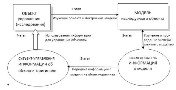 Для исследования управляемой системы на первом этапе, используя имеющуюся информацию об объекте-оригинале, строится модель объекта, отображающая существенные черты объекта-оригинала. Любая модель замещает оригинал лишь в строго ограниченном смысле, поэтому для одного объекта может быть построено несколько специализированных моделей, концентрирующих внимание на определенных сторонах исследуемого объекта.