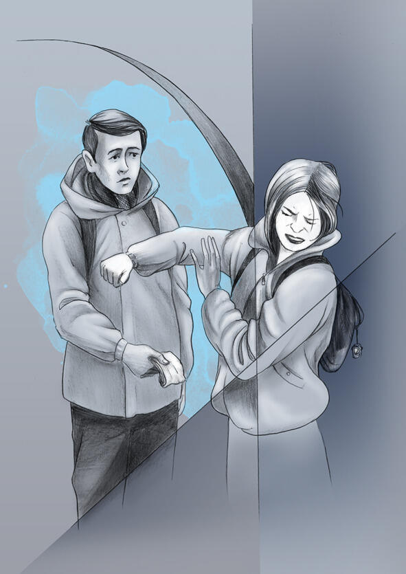 Я отталкиваю его и говорю: «Пошёл нафиг! Как ты меня достал!» Ухожу от него быстрым шагом, лавируя между пассажирами, иногда на кого-то натыкаюсь, иногда меня саму толкают. Я перехожу со станции Канал Грибоедова на станцию Гостиный Двор, забиваюсь там в самый дальний угол. Когда я останавливаюсь, то вижу, что рядом со мной снова стоит Игорёк. Я ору на него: «Чего тебе от меня надо? Что ты за мной таскаешься? Пошёл вон!» Он протягивает мне носовой платок: