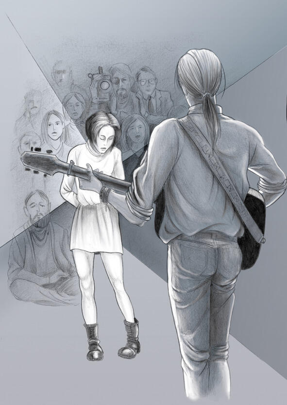 Ничего. Представляешь? Я уж её в самый первый ряд провёл, певцу представил. Вот, говорю, смотри! Чего ей ещё надо? Другие девчонки по гроб жизни были бы отцу благодарны за такое. А наша ни слова. Концерт закончился, все побежали у Гребенщикова автограф просить. Скинулись, сбегали быстро на угол, цветов купить, букет ему подарили. Одна девчонка даже телефончик свой ему оставила. Выпросила у него приглашение на квартирник в субботу. Другая напросилась его до дому проводить. Наша ничего. Он уж на неё весь концерт смотрел, она даже глаза на него не подняла. Стоит, и руки по швам свесила. Все уже расходятся, она всё стоит. Я её окликнул, тогда пошла.