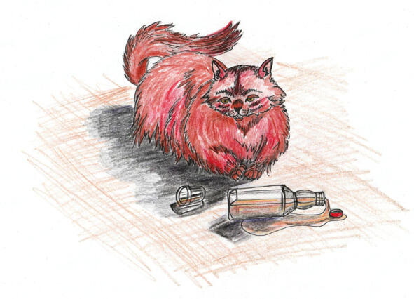 Бурча под нос что-то вроде: «Куда ты запропастилась, комета газопылехвостая?» кот снова полез в темноту. Из черноты раздалось пыхтение, затем донёсся звенящий перестук, и довольное животное вылезло наружу, держа в лапах бутылку и подозрительно пахнущий стакан.