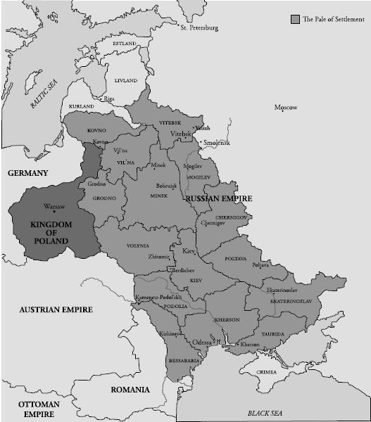 Карта Российской империи с указанием границ черты оседлости пятнадцати губерний, где почти все евреи (за небольшими исключениями) проживали до 1917 года