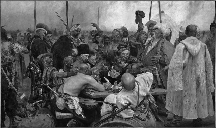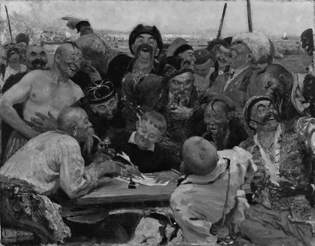 Рис. 1. И. Е. Репин. «Запорожцы пишут письмо турецкому султану», 18801891. Холст, масло. 203x358 см. Государственный Русский музей, Санкт-Петербург