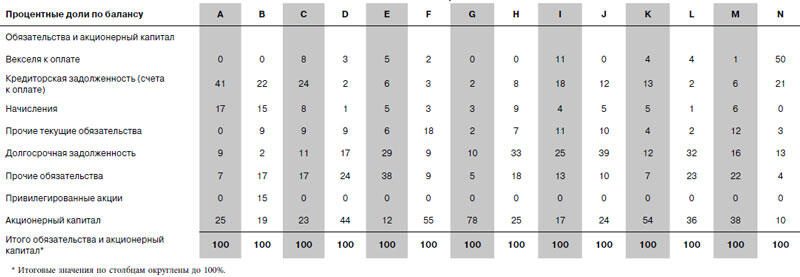 Как видно из таблицы 16, способы финансирования различаются по компаниям и отраслям. Компания G, например, больше опирается на акционерный капитал. Другие, например компания N, используют его в малой степени. Такое сочетание способов финансирования называется структурой капитала тема, к которой мы вернемся в главе 4. Обязательства упорядочены по сроку, в течение которого компании должны их погасить; те, что необходимо погасить в ближайшее время, называются «текущими».