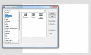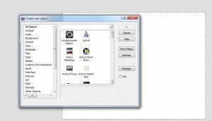 Перед нами будет открыто окно создания нового объекта, чем мы и воспользуемся. Дважды кликнем по объекту Active, и появится перекрестие, при котором, при нажатии на левую кнопку мыши, объект будет размещён в нашем фрейме.