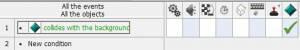 С помощью очередного клика на нашем ромбовидном объекте и выборе пунктов Collision и Collision создадим условие соприкосновения объекта с нашей «землёй». Теперь в правом столбце редактора найдём наш ромб и, кликнув правой кнопкой мыши по клетке ниже выберем пункты Collision и Collision.