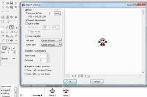 Откроем Import (Ctrl-O) импортировать изображение или набор анимаций, укажем путь, а также дополнительные опции, как представлено на рисунке.
